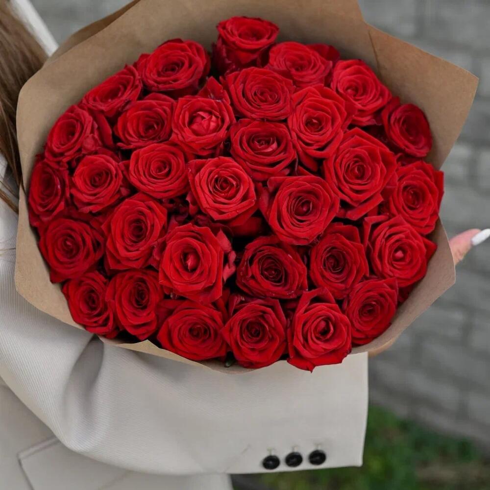 Классический букет из ароматных красных роз 50см в крафтовой упаковке, которые не оставят никого равнодушным!
